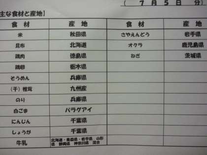 メニュー:こぎつねずし、七夕汁、鶏肉の南蛮焼き、セレクト飲み物