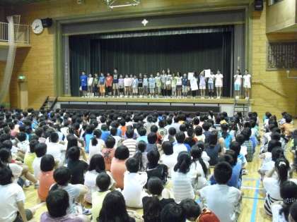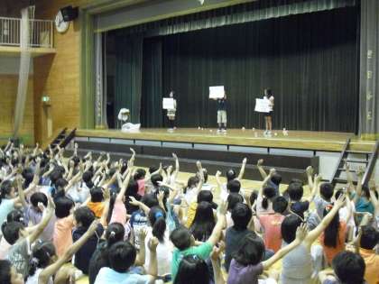 7月18日(木)に代表委員会によるエコ集会が行われました。集会では、エコに関する劇の発表をしたり、作成したエコポスターの紹介をしたりしました。ゴミを分別する大切さや、エアコンの設定温度などについて低学年の子どもたちにも分かりやすく発表することができました。