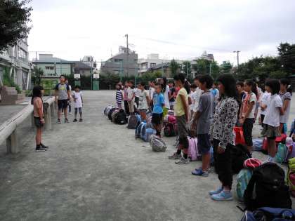 日光林間学園の出発式です。最高の3日間になるよう、みんなで力を合わせて行ってきます。