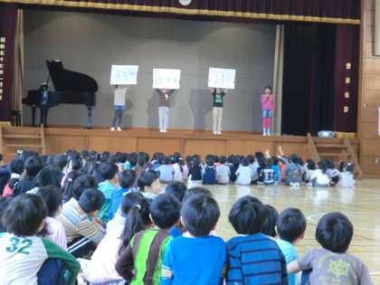 代表委員の進行で学校クイズやじゃんけん列車を行いました。