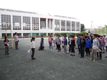 7:25 川場移動教室の出発式。今年は太子堂中学校の校庭から出発しました。