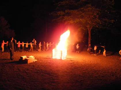 火の神から分けてもらった火で点火し、みんなで歌ったり踊ったりしました。学年のみんなの気持ちが一つになったような、思い出に残るキャンプファイヤーができました。