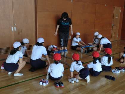 回り、上体起こし、長座体前屈、反復横とび、立ち幅跳び、ソフトボール投げのテストを受けます。