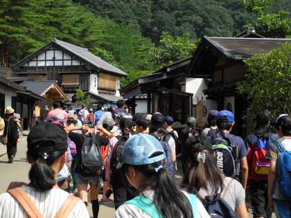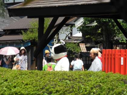日光江戸村に着きました。ちょんえげ姿のお侍さまが、入り口で出迎えてくれます。江戸時代にタイムスリップしたような気分を味わいました。にゃんまげもいました。