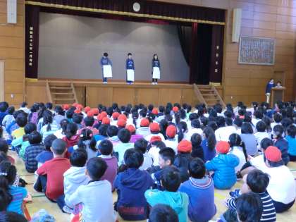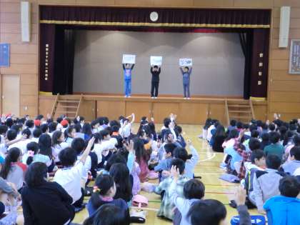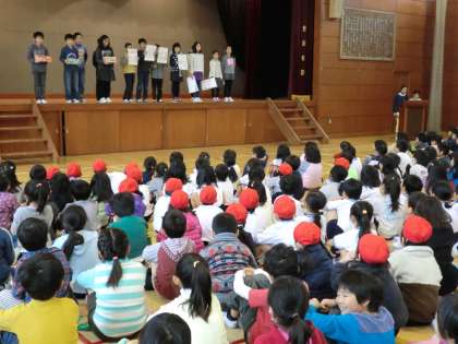 4,5年生の代表委員がユニセフ募金の呼びかけをしました。