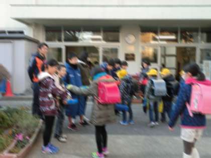 代表委員の児童が正門に立ち、募金を呼びかけました。