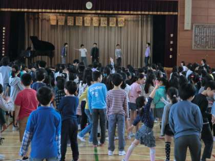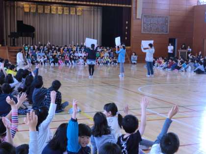 今日は、1年生と2年生以上の子どもたちがみんなで顔を合わせる「1年生を迎える会」が行われました。5,6年生の代表委員が中心となって、クイズやゲームを行い、楽しい時間を過ごしました。最後には、1年生が元気な歌声を聴かせてくれました。