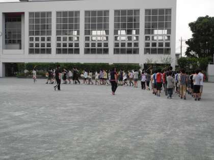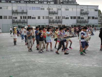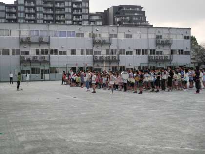 全校朝会の後は、6年生の鼓笛にあわせて教室にもどります。