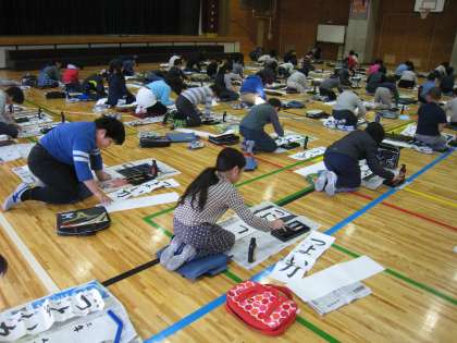 本日、書初め大会が行われています。3〜6年生は体育館、1・2年生は教室にて、筆や鉛筆に新年の清々しい思いを込めて、書写に挑戦しています。仕上がった作品は、1/20・21の書初め展に出品する予定です。児童たちが書いた力作に期待してください。