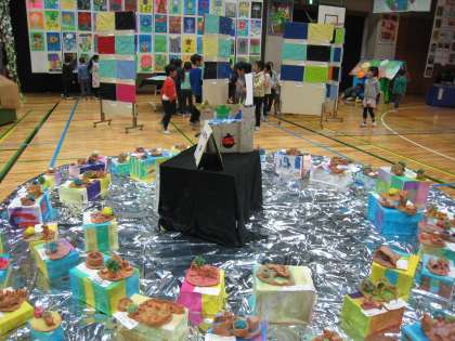太子堂小学校では、本日から展覧会を開催しています。展覧会テーマ「太子堂ZOO〜ふくらむ想像 ひらく夢〜」のもと、児童たちが制作した創造的な世界をお楽しみください。太子堂中学校の生徒作品、太子堂コミュニティー陶芸クラブの陶芸作品も併せて展示しています。是非、足をお運びいただき、感想をお聞かせください。多くの方のご来場をお待ちしています。