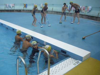 明日(20日)から夏休み水泳教室後半が始まるので5・6年生がプールサイドの汚れを落としたりなど、お掃除や準備をしてくれました。33名も参加してくれたので早く終了しました。プールのまわりも中もきれいです。後半の水泳教室にもたくさん参加してくれることを期待しています。