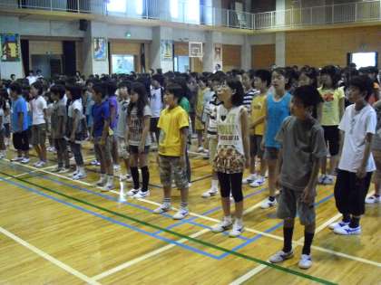 元気な笑顔が学校にもどってきました。今日から2学期です。さすが太子堂小学校の子どもたち。夏休みのブランクを感じない落ち着いた態度ですばらしい始業式でした。(写真上)2学期のめあてを発表する4年生(写真中)。新しい友達 新しい先生(写真下)の紹介もありました。