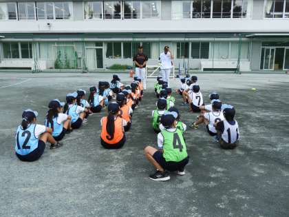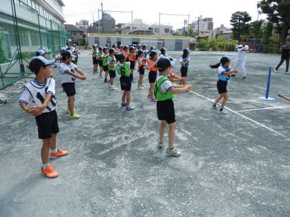 7月12日(水)4年生対象に読売巨人軍による野球教室を実施、児童はコーチの方に野球を指導していただきました。キャッチボールやバッティングなどの基本を教えていただき、最後はミニゲームで校庭に喚声が響きました。コーチの方の見本は現役選手さながらの迫力があり、児童は野球の素晴らしさに触れて楽しい時間を過ごしました。