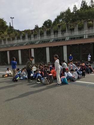 出発の前に、学年集合写真を撮ります
