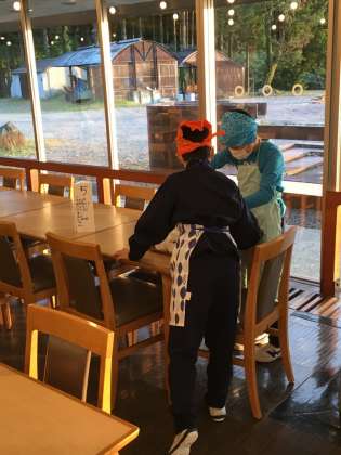 食事係が、最後の晩ご飯の準備に入っています。