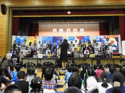 10月21日、ミニ音楽会を開催しました。保護者・地域の方には雨の中、723名もの方にご参観いただき、ありがとうございました。各クラス・団体とも日頃の授業や練習の成果を出しきり、素晴らしい発表会となりました。