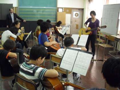 最初授業を見学し、その後、授業を体験してきました。最後に体育館で生徒会から学校の説明を聞きました。