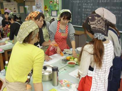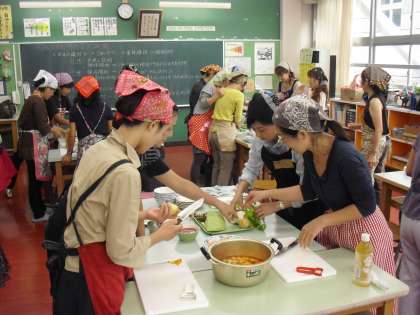本日、PTAの第二回家庭教育学級が家庭科室で開かれました。テーマは「エコクッキング」です。NPO法人えこひろばの方々を講師として迎え、季節の野菜を使って、ミネストローネを作りました。1なるべくごみを出さない 2水を使いすぎない 3エネルギーを使いすぎないをねらいとしてグループごとに楽しく活動することができました。