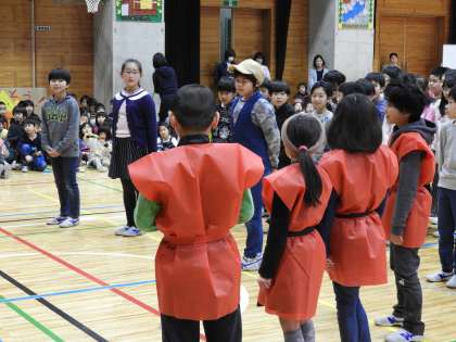 全員合唱では「ぼくとわたしの太子堂」「変わらないもの」2曲を歌いました。各学年の出し物では、学芸会で演じた劇のリメーク、集団演技、合唱など各学年ごとに工夫していました。