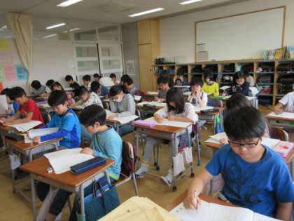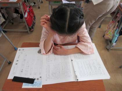 今日4年生以上は、学習習得確認調査が実施されました。こうした調査が初めての4年生は、じっとして取り組んでいました。えんぴつは動かしていました。