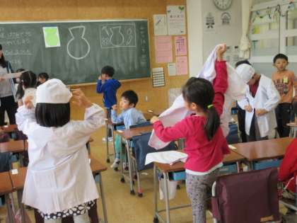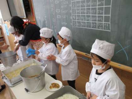 スマイルと支援員、専科、栄養士と担任以外の教職員がサポートに入ります。