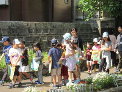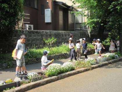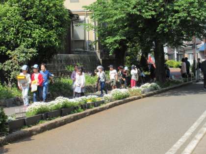 1,2組一緒に、学校前の緑道に春を探しに出ました。
