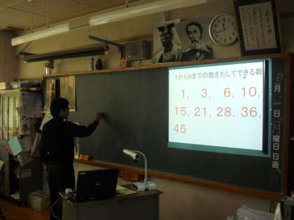 太子堂中学校の数学の加藤主幹教諭が来校して、6年生に1から9までの数字を使って、算数の楽しさを指導してくれました。世田谷9年教育の一環として、小・中学校の連携をさらに進めていきます。