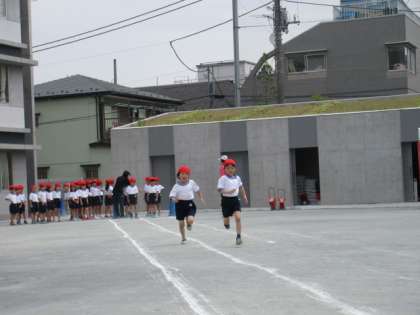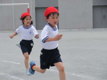 隣を気にしながら走る子、笑いながら走る子、1年生はいろいろです。