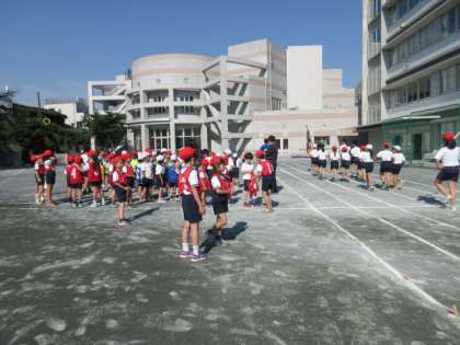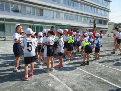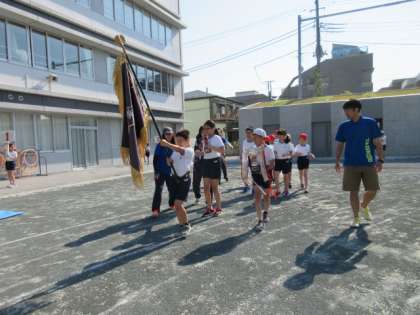 朝練も忙しくなってきました。リレーに鼓笛とプラカードで入場行進の練習。