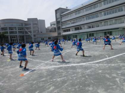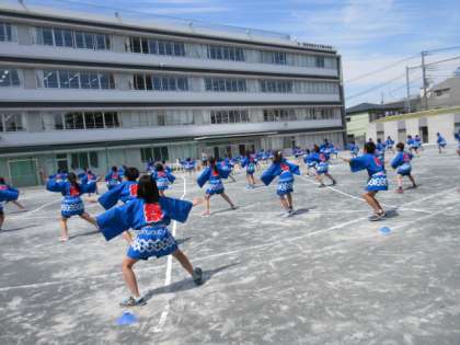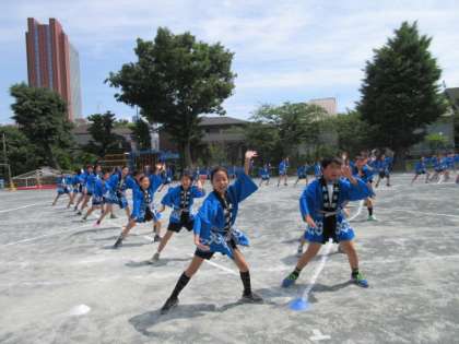 法被を着こんで踊ります。腰を深く落として!手をまっすぐにぐっと伸ばして1