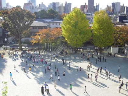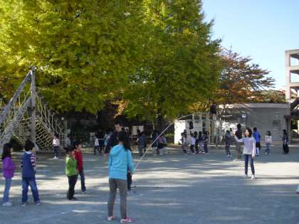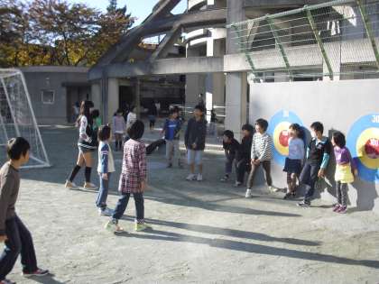 晴天の下、朝の時間にたてわり班活動がありました。鬼ごっこや長縄跳び、だるまさんがころんだなど、6年生が考えた遊びを楽しそうに遊んでいました。「朝からたくさん遊び過ぎて、疲れた〜。」と言っていました。