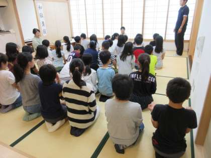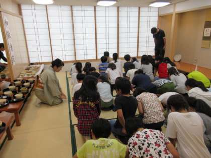 茶道のお師匠様においでいただいて、5年生に茶道教室を実施していただきました。