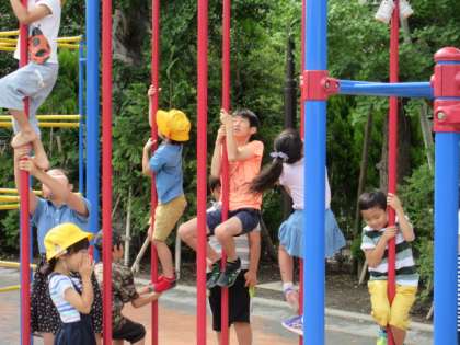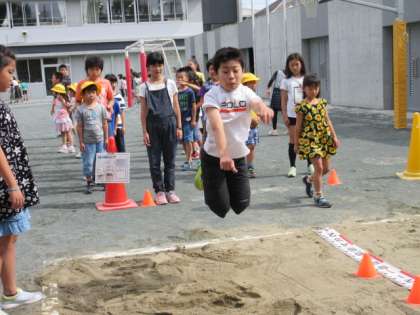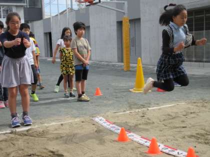 走る、チャレンジダンス、のぼり棒に鉄棒、フラフープ等、体育館でもメンコ等が行われています。