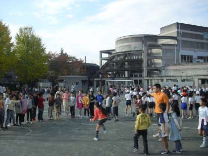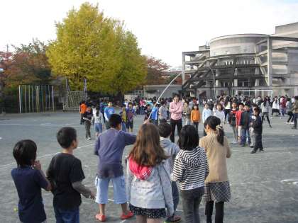 体育朝会で1年生から6年生まで各クラスごとに長縄跳びをしました。最後に6年生がお手本を見せてくれました。さわやかな秋空の下、とても楽しい時間を共有することができました。