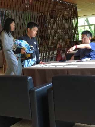 お風呂の後は、ハガキを書きます