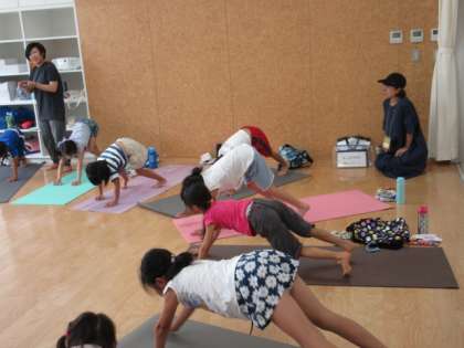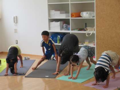 キッズヨガでは、動物の姿勢をとっていて、「ネコ」と言うと