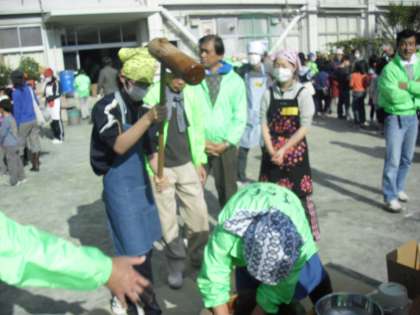 12月5日(日)太子堂小学校の校庭で『もちつき大会』が開かれました。お天気にも恵まれ大勢の参加がありました。