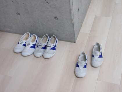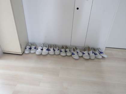 「脚下照顧」、足元からきちんとを合言葉に過ごしている本校、1年生が保健室前に上履きを脱いでいきました。「……?」のような上履きもありましたが、まずは合格です。