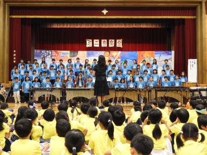 9月29日(土)、創立90周年記念Tシャツを着用し、児童は平成最後のミニ音楽会に臨みました。各学年とも音楽授業を中心に練習してきた歌と合奏を、心を込めて元気よく美しく体育館に響かせました。お越しいただいた773名の保護者・地域の皆様、文化の秋を満喫していただけたでしょうか。