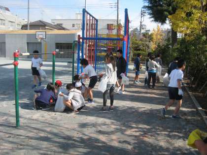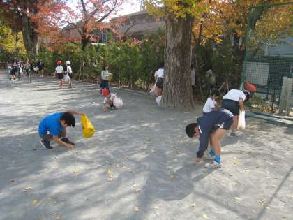 4年生:11月27日(火)3校時、5年生:11月28日(水)5校時、1年生:11月30日(金)1校時、2年生:12月3日(月)1校時、3年生:12月7日(金)6校時の予定で「美化週間」を実施します。校庭の正門前や緑道の落ち葉を拾います。今日は4年生が一所懸命に落ち葉拾いをしてくれました。尚、6年生は毎週火曜日・木曜日の始業前に美化活動をしています。