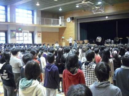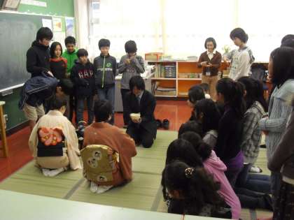 今日1月24日(月)から28日(金)まで、今年度最後の学校公開週間です。初日の今日は音楽朝会(写上)茶道教室6年(写中・下)がありました。