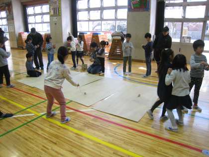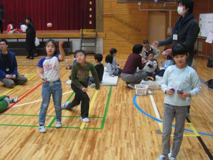 2月22日・23・25日、学校公開期間には493名の保護者・地域の方に参観していただきました。1年生は2/23地域の方をお招きして「昔遊び体験」を行いました。児童は、独楽・けん玉・お手玉・かるた・羽根つきを教えていただき、保護者の方も一緒に日本の伝統的な昔遊びを楽しみました。