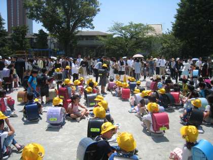 5月11日、引き渡し訓練を行いました。警戒宣言発令時を想定して、保護者の方に児童を引き渡すことをねらいにしています。この機会に、ご家庭でも災害に備えて警戒宣言発令時の約束を確認してください。