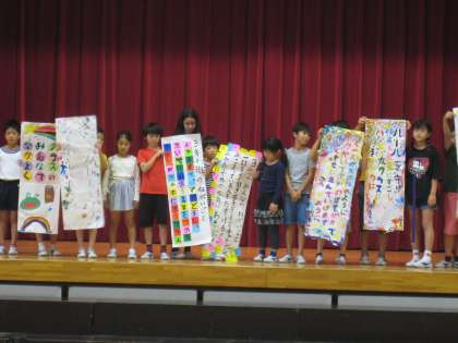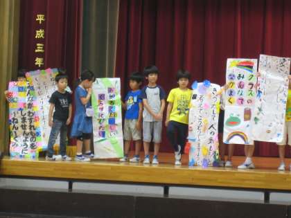 7月5日、集会委員が司会進行を務め、七夕集会を行いました。寸劇やクイズなどを集会委員が考え、七夕の行事を分かりやすく全校児童へ伝えました。また、各クラス毎に考えた願いを書いた大きな短冊を、代表児童がそれぞれ発表しました。