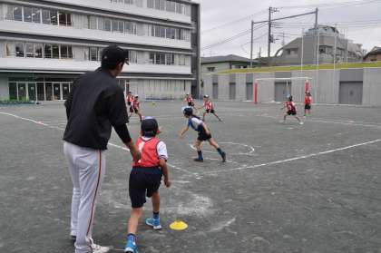 7月9日、読売巨人軍のコーチ2名を招いて3年生対象に「ジャイアンツアカデミー」という野球教室を行いました。プロのコーチによる遠投などの手本に児童は歓声をあげていました。1・2組とも1時間ずつの体験でしたが、中学年向けに分かりやすく野球を指導していただき、スポーツの楽しさを味わう充実した時間を過ごせました。