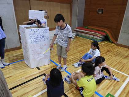 7月13日、「東京2020オリンピック・パラリンピック競技大会」へ向けて児童の興味・関心を高めるため、オリ・パラデーを実施しました。オープニングとして3・4年生が元気いっぱいに「おーい せたがや」(オリ・パラダンス)を披露しました。次に、6年生がオリンピックのことを分かりやすくコマーシャル仕立てにしてユーモアたっぷりに演じました。そして5・6年生が「総合的な学習の時間」で調べたオリンピック・パラリンピックの内容や歴史、他国の文化を1〜4年生に向けて発表しました。5年生は教室にて拡大投影機やタブレットを使い、自分たちが編集した映像を説明しました。6年生は体育館にて調べた内容を下級生が楽しめるように工夫して発表しました。
