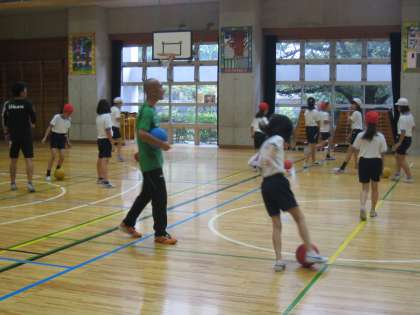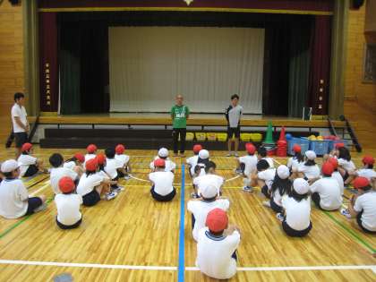 7月16日、東京ヴェルディのコーチ2名を招いて5年生対象にサッカー教室を行いました。残念ながら雨天のため、体育館での実施となりましたが、プロのコーチによる基本技術やゲーム形式の練習を児童は楽しく体験しました。スポーツの楽しさを味わい充実した時間を過ごせました。