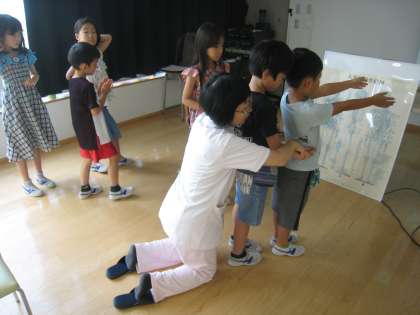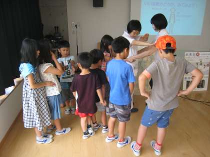 7月26日、ワークショップ事務局主催の太子堂ワークショップの様子です。「姿勢のフシギ・低学年」講座、児童は骨の構造を学び、模型を使いながら骨の大切さを体験し、よい姿勢について考えるキッカケになりました。