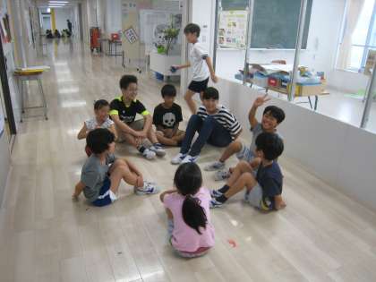 9月18日、異学年集団によるたてわり班活動を行いました。朝の活動時間は「読み聞かせ」を6年生がしてくれました。昼休みはたてわり班で外遊びの予定でしたが、雨のため教室でできる遊びをしました。