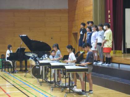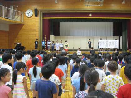 9月27日、音楽朝会にて音楽委員の伴奏に合わせて「翼をください」「太子堂の未来へ」を全校児童で合唱しました。ミニ音楽会の本番が来週に迫り、どの学年の児童も大きな声を体育館に響かせていました。来週が楽しみです。